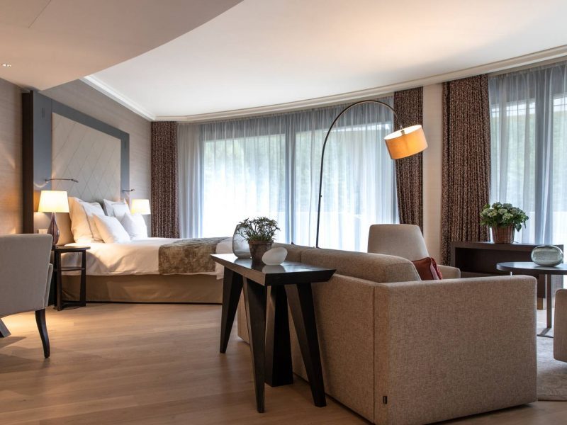 Unsere eleganten und komfortablen Deluxe Zimmer sind mit bequemen Kingsize-Betten und luxuriöser Bettwäsche ausgestattet – sozusagen eine Einladung, sich einmal so richtig lang zu machen. Nach Südwesten ausgerichtete Balkone vermitteln Ihnen inmitten einer unvergleichlichen Naturkulisse das Gefühl von Freiheit und ermöglichen einen sensationellen Blick über Davos. Die Zimmer selbst bieten jede Menge Qualität, Innovation und Komfort, und die Innenausstattung strahlt mit ihren lokalen Elementen zeitlose Eleganz aus. Ein unverwechselbares Merkmal des AlpenGold Hotel sind die speziell für das Hotel gefertigten Sofas mit LigneRoset-Polsterung.