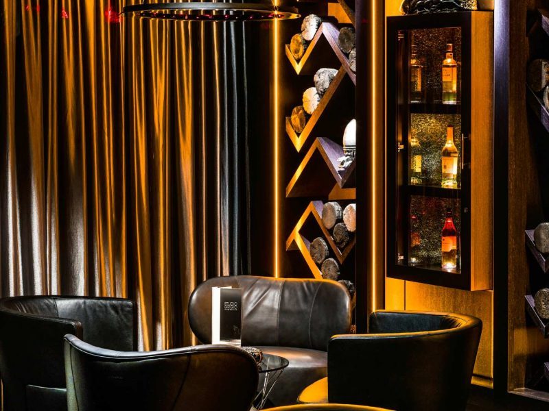 Schattierungen in Schiefergrau und Schwarz, perfekt inszeniert durch abwechslungsreiche Kunst und spektakuläre Beleuchtung, sorgen für eine private, elegante Atmosphäre. Während unserer gustativen Reise nach Japan oder Peru verlieren Zeit und Raum zunehmend an Bedeutung …