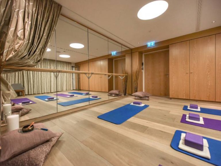 Das angrenzende Yogastudio ist der ideale Rückzugsort für entspannende Pilates- oder Meditationsübungen.